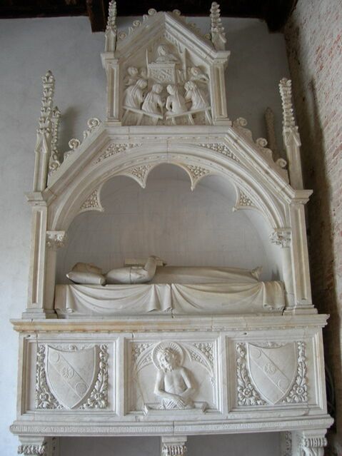 Впоследствии строительство осуществлялось под руководством Лупо ди Франческо и было завершено только в 1464 году. Тела хоронили по периметру, оставляя неприкосновенной «святую землю». В восточной стороне расположена капелла. По одной из версий постройка задумывалась не в качестве кладбища, а по велению архиепископа Даль Поццо как церковь Пресвятой Троицы (Santissima Trinità), но во время строительства проект изменился[6].