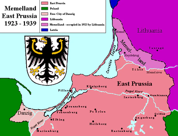 В 1920 году Мемельская область, согласно Версальскому мирному договору, была передана под коллективное управление стран Антанты. В Мемель ввели французский гарнизон из 200 солдат, а текущие вопросы решало местное самоуправление — «директория», состоящая в основном из немцев.[13]