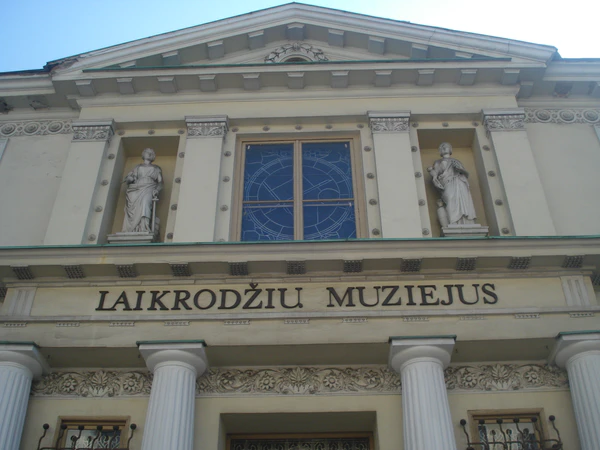 Открыт в 1984 году, расположен в красивом особняке XIX века. Здание, построено как загородная резиденция богатейшим горожанином шотландского происхождения Иоганном Симпсоном (Johan Simpson) в начале XIX века. Позже дворец принадлежал семье шотландцев Мутрэй (Mutray), торговцу и мэру города Вильгельму, а после его смерти доктору медицинских наук Иоганну Августу (Johan August Mutray). После 1913 года здание принадлежало банкиру Иоганну Гирхбергеру (Johan Hirchberger), во время правления которого здание и приобрело свой теперешний облик. Во время последней реконструкции фасад здания украсили четыре колоны и две классические скульптуры, символизирующие торговлю и ремесло[83]. В музее можно ознакомиться с самыми разнообразными приспособлениями, с помощью которых человек пытался измерить время в разные исторические эпохи. В музее представлены солнечные, звёздные, огненные, водяные и песочные часы. Имеется уникальное собрание механических часов XVI—XIX веков. Есть в музее и современные часы — электромеханические, электромагнитные, электронные и кварцевые, а также коллекция старинных лунных и лунно-солнечных календарей. Под всеми экспонатами дополнительная информация — гравировка, диаграмма и объяснительные тексты. Дворик музея очень красив, летом в нём можно увидеть цветочные часы, он используется для различных городских мероприятий, а также для прослушивания концертов находящегося рядом Клайпедского карильона. Адрес — ул. Liepų (Лиéпу), 12.