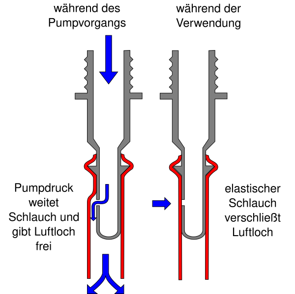 Ниппель клапана, в самом простом варианте, представляет собой полый цилиндр, с одной стороны которого имеется резьба, для присоединения насоса, а второй конец — глухой. В цилиндре, ближе к глухому наконечнику есть одно или два боковых отверстия для впуска накачиваемого воздуха. С глухой стороны, на цилиндр натягивается резиновая трубка, которая под внутренним давлением воздуха в камере и собственным натяжением обжимает цилиндр и перекрывает выход воздуха через боковое отверстие. При накачивании, сопротивление внутреннего давления преодолевается давлением воздуха в насосе и воздух поступает в камеру. При накачивании через клапан Dunlop, энергия тратится и на преодоление натяжения резиновой трубки. Поэтому сопротивление воздушному потоку более заметно, чем в других системах клапанов[4]. В силу конструкции, обычный клапан Dunlop не предназначен для высоких давлений воздуха[5], превышающих 6 бар[4]. Также, в силу конструкции, на этом клапане невозможно точно замерять давление[5][4].