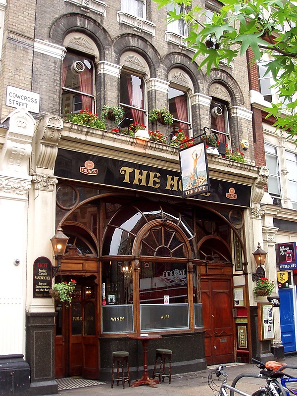 Пабам, обслуживающим мясных работников Смитфилдского рынка, разрешается открываться в 5.30 утра. Это бывший джиновый дворец пивоварни Николсона в стиле модерн, «Фокс и Якорь», «Надежда» и таверна «Петух» (которая расположена под самим рынком).