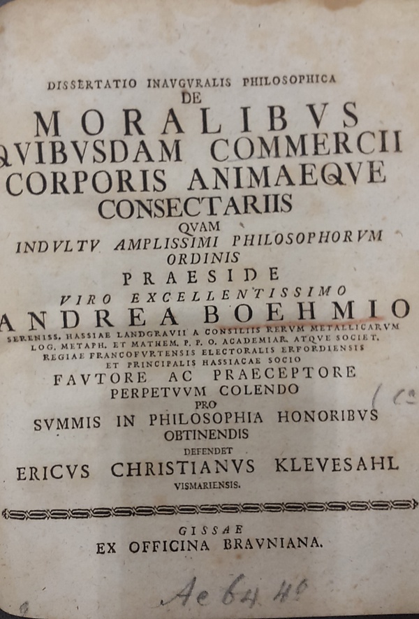 - «De usu, quem ex litteris Elegantioribus capiant studia altiora» («Об опыте, который высшее образование может извлечь из более элегантной литературы»). Около 1770 г.