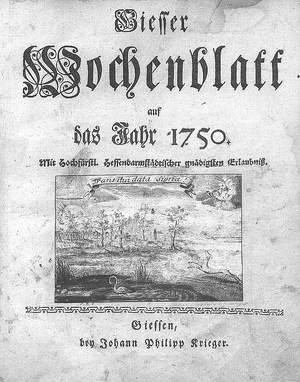 С 1750 года в Гисене выходила одна из первых еженедельных газет. Её издателем был Йоханн Христиан Конрад Кригер, а инициаторами и руководителями были профессора Гисенского университета. С 1769 по 1771 год руководителем газеты был профессор Эрих Кристиан Клевезаль.[4]
