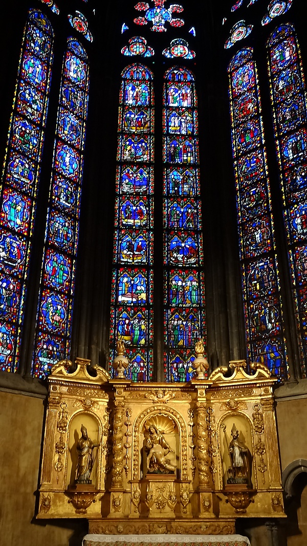 В 1262 году в частично построенном кафедральном соборе с большой помпой прошла церемония бракосочетания будущего короля Франции Филиппа III Смелого с инфантой Арагона Изабеллой и, вероятно, благодаря щедрости короля Людовика Святого в соборе была выполнена часть витражей, напоминающих витражи парижской часовни Сент-Шапель.