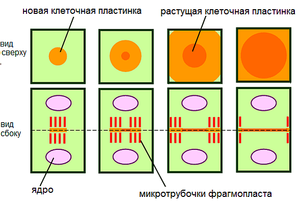 Сильная зависимость формирования клеточной пластинки от активности комплекса Гольджи объясняет, почему в растительных клетках, в отличие от клеток животных, во время клеточного деления не разрушается секреторный аппарат.