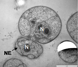 Распространено и наличие двух ядер в клетках мицелия у грибов (особенно у образующих микоризу[74]) и в клетках сближаемых в современных классификациях с грибами микроспоридий. Данное явление известно как дикарион, или диплокарион[75]. Встречающиеся у многих грибов несептированные гифы также, по существу, представляют собой гигантские многоядерные клетки[76].