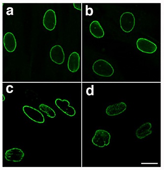 В клетках животных механическую поддержку ядра обеспечивают две сети из промежуточных филаментов: ядерная ламина, представляющая собой сеть промежуточных филаментов на внутренней поверхности ядра, а также менее организованные филаменты на цитозольной поверхности ядра. Обе системы филаментов обеспечивают поддержку ядра и служат для закрепления хромосом и ядерных пор[7].