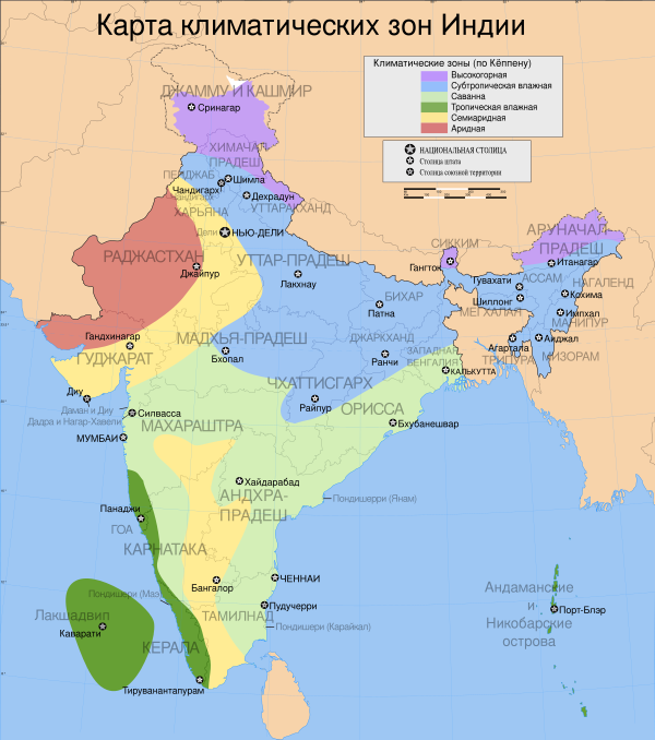 Департамент метеорологии Индии выделяет 4 отдельных сезона[7]: