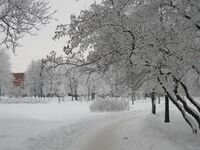 В то же время зимы 2009/2010 и 2010/2011 были холоднее нормы и выдались небывало снежными[19]. Так, например, за период 21-26 декабря 2009 года в виде снега выпало 69 мм осадков, что составляет более 1,5 месячных норм[20]. А к началу марта 2011 года снежный покров достиг 73 см, побив рекорд 1966 года (68 см)[21]. Кроме того, вторая декада февраля 2011 года со средней температурой за 10 дней −19,5 °C стала самой холодной в истории наблюдений[22].