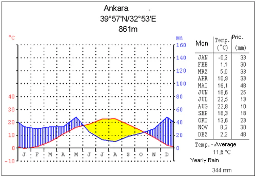 - Континентальный климат в основном распространён в Центральной Анатолии, Восточной Анатолии, большей части Юго-восточной Анатолии, а также в центральных частях Фракии. Летом бывает жарко и засушливо, а зимой преобладают холод и снег.