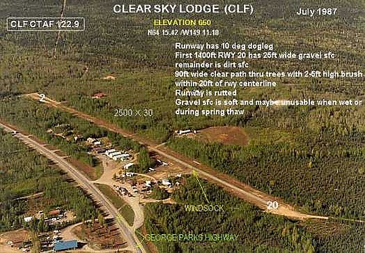 Аэропорт Клир Скай-Лодж располагается на высоте 198 метров над уровнем моря и эксплуатирует одну взлётно-посадочную полосу: