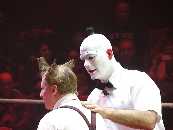 Истоки клоунады — в народных фарсах. Традиционная маска белого клоуна взята из итальянской комедии дель арте, французского и английского площадного театров, рыжего клоуна — от народных шутов и внешне неловкого и неуклюжего униформиста, пародирующего номера артистов. На конфликте, возникающем между нарядным и самоуверенным белым клоуном и неловким, нелепым рыжим клоуном, строится так называемое антре, в котором победителем обычно бывает рыжий.