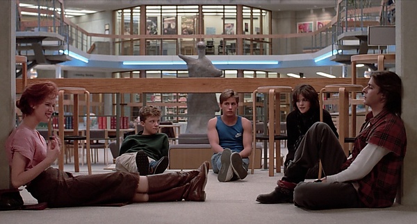 Раскрытие образа главных героев начинается с их прибытия к школе. Машины родителей примерно соответствуют социальному статусу каждого из них. Клэр подвозят на дорогом BMW[~ 5]. Остальные приезжают на машинах попроще. Джон Бендер — из самой неблагополучной семьи — приходит пешком[77]. Эллисон, которая страдает от недостатка внимания в семье, единственная не общается со своими родителями перед выходом и даже не сидит с ними рядом на переднем сидении. Эпизод обеда, который ребята принесли из дома, добавляет новые штрихи к образу и статусу. Клэр приносит суши в изысканной деревянной коробочке, и ест при помощи палочек. Эндрю Кларк заправляется здоровой пищей для спортсмена. Эллисон употребляет странные сэндвичи из хлопьев. Бендер остаётся без обеда[78].