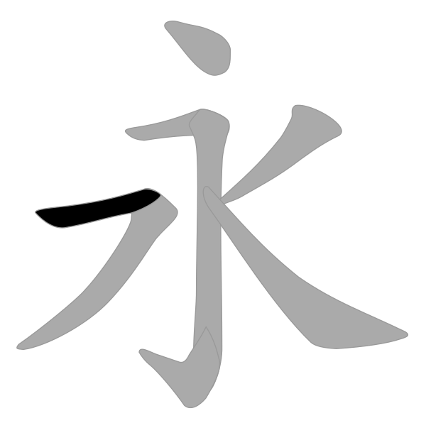 В иероглифике и каллиграфии является одной из графем — горизонтальной чертой хэн (橫 héng). Входит в восемь принципов иероглифа юн.
