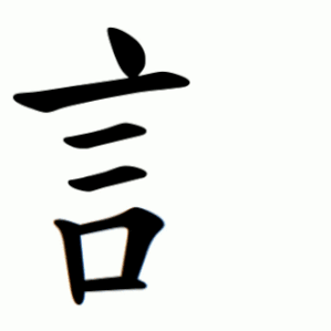 Современный иероглиф используется во множестве значений, связанных с речью: «речь, язык, слова, иероглифы, речение, фраза, договоренность, условие, уговор, клятва, дебаты, выступление, описание» и др.