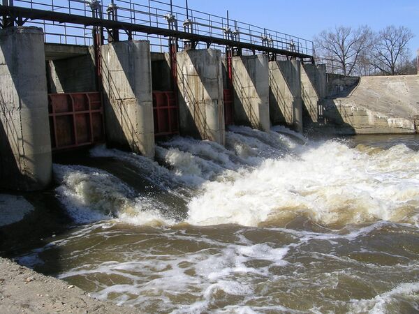 - в Ногинске — бетонная плотина высотой около 2,5 м с шестью регулируемыми водосливами и береговым водосбросом.