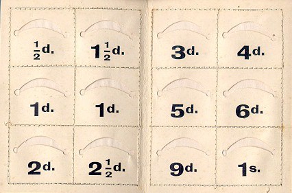 Английский писатель Льюис Кэрролл изобрёл в 1889 году[3] собственный вариант держателя для почтовых марок. Он имел вид сдвоенной открытки, и на каждой из двух внутренних его страниц было по шесть специальных кармашков. Марки вставлялись в эти кармашки через соответствующие прорези, причём в каждый кармашек, по утверждению самого писателя, помещалось по шесть марок данного номинала. Держатель был рассчитан на хранение в нём марок одиннадцати номиналов — от полупенни (½ d.) до 1 шиллинга (1 s.). Поскольку наиболее распространённым английским тарифом того времени был почтовый сбор в 1 пенни (1 d.), для однопенсовых марок в держателе был предусмотрен не один кармашек, а сразу два.