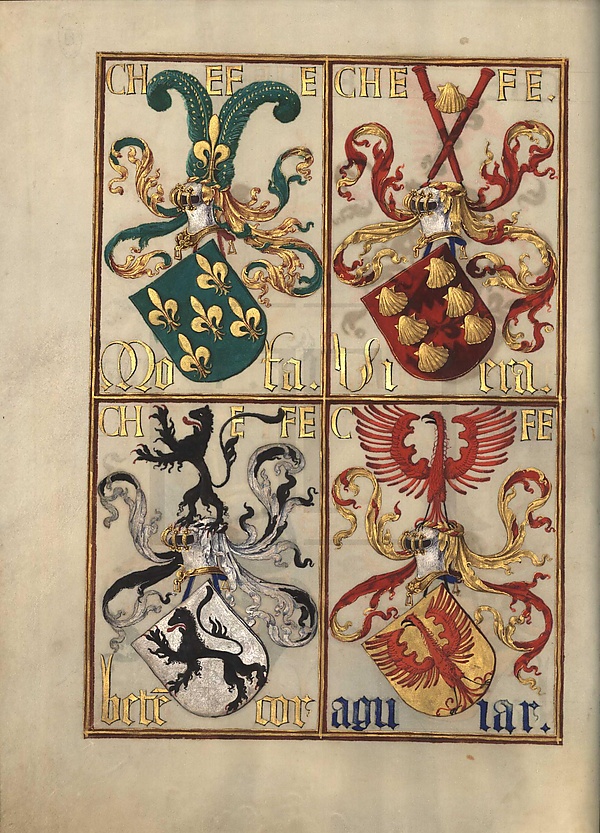 - f. VI r — король римлян (Rei dos Romanos), король Франции (Rei de França), король Кастилии (Rei de Castela), король Англии (Rei de Inglaterra)