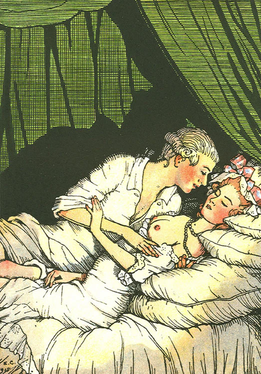 «Малая Маркиза». Издание вышло в Германии в 1907 году (Мюнхен, издательство Вебера; Im Hyperionverlag zu Berlin) на немецком языке. Имело всего три раскрашенных рисунка[2]. По другим данным, имело шесть иллюстраций и шесть виньеток — остальные, хотя уже были созданы, не были пропущены немецкой цензурой[1].