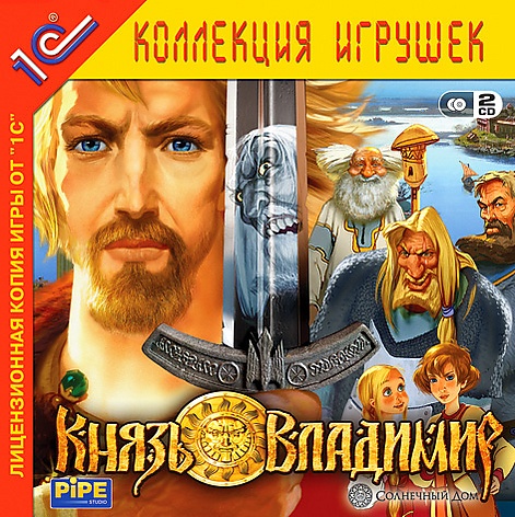 «Князь Владимир» — компьютерная игра-аркада в жанре экшн для ПК, вышедшая 5 мая 2006 года компьютерной компанией «1С» на одноимённый фильм «Князь Владимир», и разработанная студией компьютерных игр, «PIPE Studio»[49][50]. Анонс игры состоялся 24 марта 2006 года[51]. Игра укомплектована в два компакт-диска, упакованные в дабл-кейс[49]. Возрастное ограничение к игре составляет: 12+[50].
