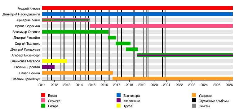 - Владимир Стрелов — соло-гитара (2011—2016)