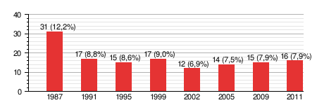 - Динамика депутатских мест и голосов избирателей (в процентах)