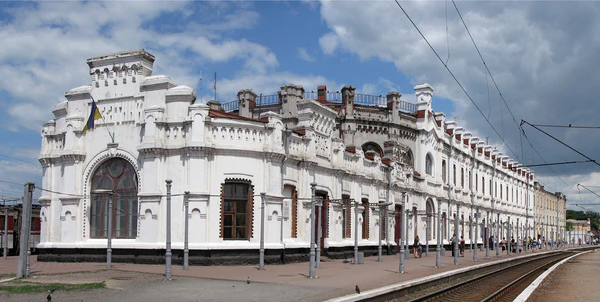 - Железнодорожный вокзал в Искоростене Волынской губернии в неорусском стиле (1905).