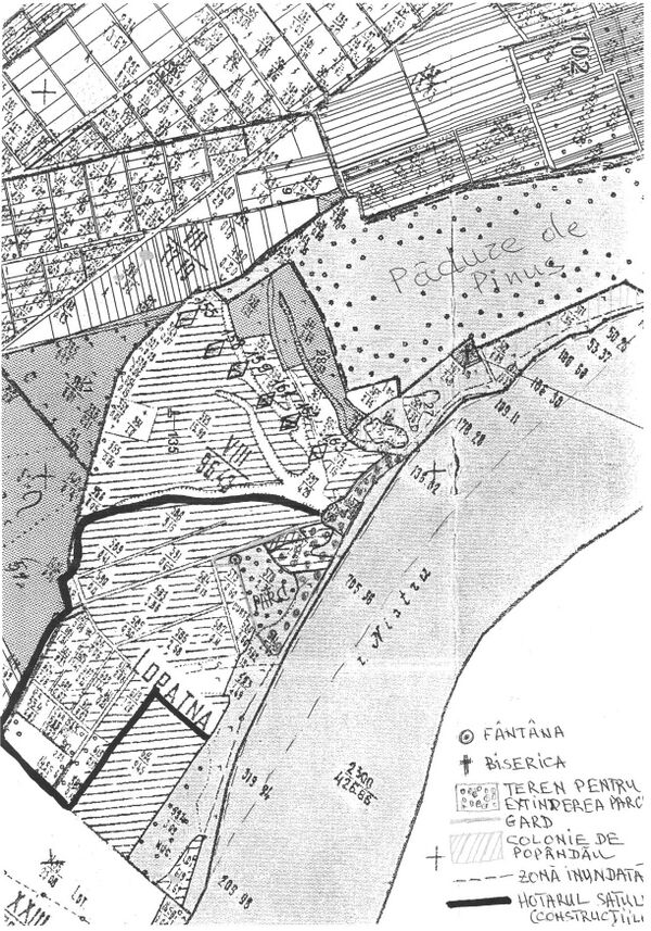 Особенно ценными являются территории, прилежащие с юго-восточной стороны. В первую очередь это лесной массив, который тянется по крутому берегу и разделён посередине террасой. Но этот лес искусственный и включает сосну Pinus silvestris, P. nigra — деревья 40 — летнего возраста, в хорошем состоянии, непоражённые болезнями или вредителями. Деревья сосны вместе с сопровождающими их кустарниками и голые каменистые склоны создают красивый природный пейзаж. Лес протягивается почти до села Лопатна, он богат травянистыми растениями, которые особенно развиты на участках склонов, лишённых древесной растительности и участках имеющих вид полян. Между полосой искусственного леса и берегом реки Днестр расположен участок степной растительности. На этом месте раньше находилось село Лопатна, которое было перемещено из пойменной части реки на террасном участке в связи с сооружением Дубоссарского водохранилища. После этого здесь сохранилась церковь и несколько заброшенных (в том числе и вновь построенных) колодцев. Около церкви поселилась колония европейского суслика (Spermophilius citellus) — вид включённый в Красную Книгу РМ (2002). Этот участок является частью единственного небольшого ареала в Молдавии, указанного для среднего течения Днестра и низовий Реута. Следовательно для одного единственного вида, занимающего территорию примерно 100×500 м и со значительной численностью особей, необходимо создать особый заповедник[4].
