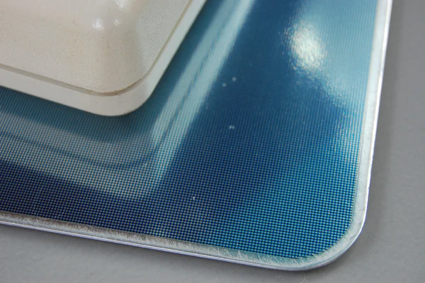 Для облегчения работы указателя 10 ЭЛТ, в котором металлический шарик катится по твердой поверхности, может быть использована раскрытая прокладка. Эластичный резиноподобный материал 12 скреплен или иным образом прикреплен к твердому основному материалу 14, который удерживает резиноподобный материал плоским. Основание имеет четыре резиноподобные прокладки 16 на противоположной стороне от упругого материала для предотвращения скольжения прокладки, например, по поверхности стола.