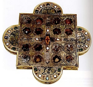 | дерево, серебро, золочение, драгоценные камни. 39 × 39 см | |