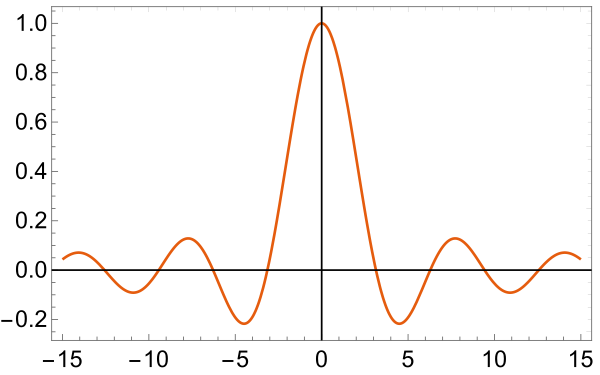 В этом случае интенсивность на экране имеет вид косинуса, но амплитуда его уменьшается по закону гиперболического синуса в зависимости от протяженности источника.