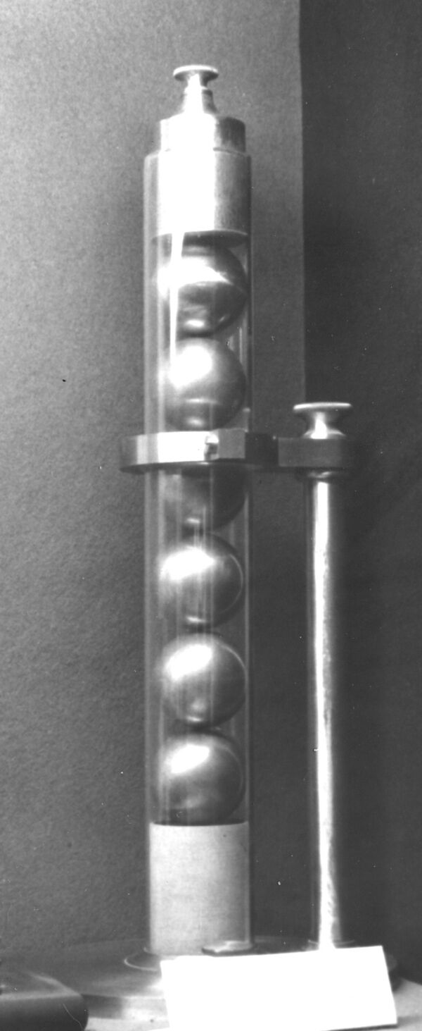 В 1895 году Александр Попов, ознакомившись с работами Лоджа, использовал когерер с железными опилками в созданном для лекционных целей приборе для обнаружения и регистрирования электрических колебаний, получившем название «грозоотметчик». Попов остановился на конструкции когерера, состоявшей из стеклянной трубки диаметром около 1 см и длиной 6—8 см, к стенкам которой изнутри были приклеены тонкие платиновые полоски. Наполовину наполненная опилками трубка располагалась горизонтально. В схему прибора последовательно с когерером было включено реле — его контакты при срабатывании когерера включали электрический звонок, язычок которого на обратном ходе встряхивал когерер для восстановления его чувствительности[10][* 4].