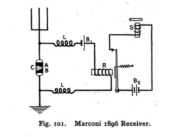 В 1889 году английский физик и изобретатель,Оливер Лодж экспериментировал с приборами, описанными в опытах Генриха Герца, при этом в качестве антенны приёмника он использовал вибратор, как в передатчике. Для повышения чувствительности приёмного вибратора он предельно уменьшил длину его искрового промежутка, при этом после проскакивания искры через искровой промежуток электроды вибратора замыкались (сцеплялись). Для размыкания электродов требовалось лёгкое встряхивание. Подключив к электродам вибратора источник питания и электрический звонок, Лодж осуществил звуковую сигнализацию факта принятия электромагнитной волны. Приёмник со «сцепляющимися» электродами искрового промежутка он назвал «когерером» и сообщил о нём в докладе в 1890 году. Лодж предложил и другую конструкцию когерера, более чувствительную и более простую в регулировке. В этом варианте металлическое остриё касалось окисленной поверхности алюминиевой пластинки[3].