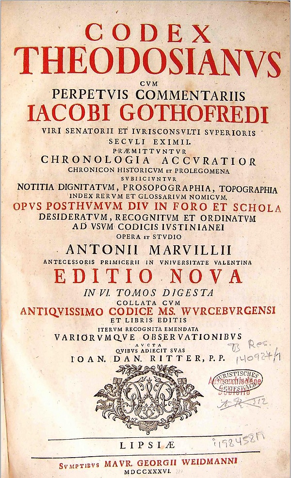 Даже после того, как при Юстиниане была осуществлена гораздо более полная кодификация римского права, в Галлии и других западных провинциях продолжали руководствоваться Феодосиевым сводом конституций. Codex Theodosianus не раз переиздавался, как в Средние века, так и в новое время. Среди прочих установлений, Кодекс Феодосия содержал запрет на гадания и магию.