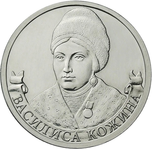 - В 2012 году Центральным банком Российской Федерации была выпущена монета (2 рубля, сталь с никелевым гальваническим покрытием) из серии «Полководцы и герои Отечественной войны 1812 года» с изображением на реверсе портрета организатора партизанского движения Василисы Кожиной[10].