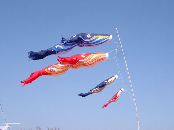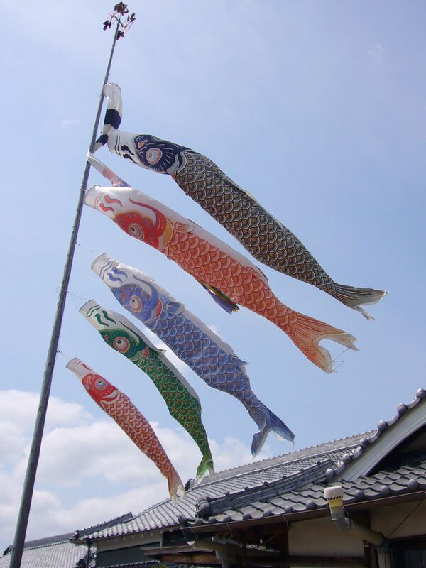«Дети в Эдо — майские карповые фукинагаси», говаривали в то время. То есть коинобори изначально был просто фукинагаси в форме карпа. Вообще говоря, коинобори так же, как и кадомацу или кукла хина — традиция, которая появилась в период Эдо в домах состоятельных семей.
