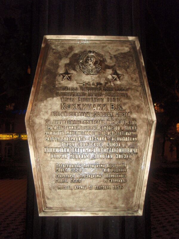 - Владимиру Коккинаки установлен бюст в сквере на улице Советов в г. Новороссийске.