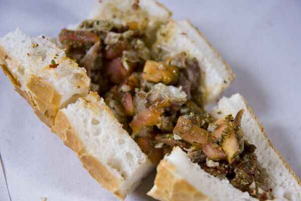Совершенно иной способ приготовления предполагает смешивание рубленых потрохов с нарезанными помидорами и зелёным перцем. Эту смесь готовят на большой жаровне с добавлением острого красного перца и орегано. Повар постоянно перемешивает и рубит смесь двумя лопатками. Готовое блюдо держат тёплым на краю жаровни до подачи заказа.