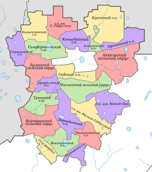 | Северо-запад: Симферопольское | Север: Конысбай | Северо-восток: Кызылтан |
