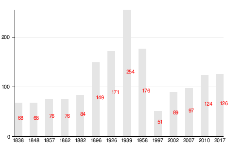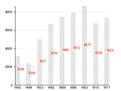 В 1865 году в приходе состояло 5349 чел., в 1917 году — 7324 чел., а в 1928 году — 8150 человек.