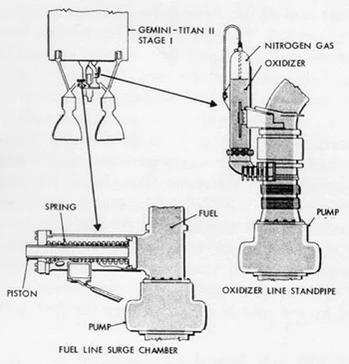 В 1962 г. при испытаниях «Титан-2» на последних минутах выведения наблюдались колебания возрастающей частоты, с 9-10 до 13-15 Гц, при этом перегрузка в головной части ракеты от этой тряски достигала 2.5g.[1] Для того, чтобы использовать эту ракету для пилотируемых полётов по программе «Джемини», потребовалась дорогостоящая доработка с введением демпферов на трубопроводы для снижения уровня вибраций ниже 0.25g.[5] Аналогичные проблемы на советской ракете «УР-100Н», вредно влияющие на точность стрельбы, были обнаружены с опозданием уже после принятия ракеты на вооружение и решались введением специальных грузов на упругой подвеске.[1]