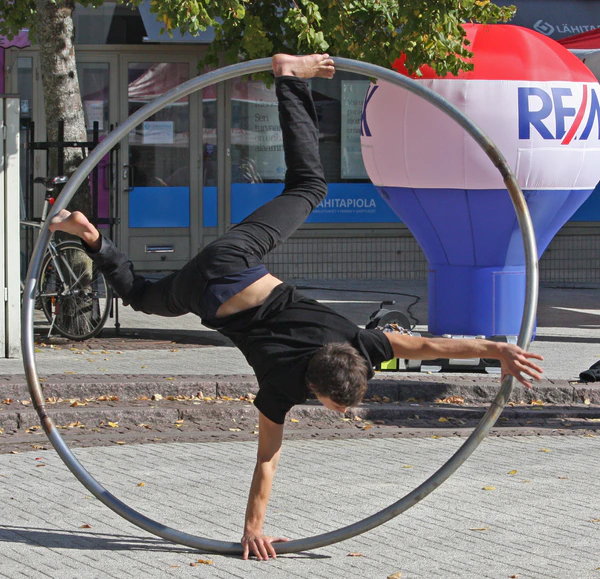 В 1996 году колесо стало заново использоваться как цирковой реквизит Даниэлем Сиром, выпускником Национальной школы цирка в Монреале и одним из основателей цирка Cirque Éloize.[2] По словам Сира, идея создания колеса пришла к нему от большого обруча и старой круглой кованой вешалки.[2] Изобретение прошло несколько этапов — от стального колеса до алюминиевого с добавлением противоскользящего покрытия из ПВХ. В конечном итоге колесо Сира было реализовано как многоэлементная конструкция, которую можно разобрать для облегчения транспортировки.[7] Впервые колесо было представлено в номерах цирка Cirque Éloize,[2] который гастролировал по Северной Америке, Европе и Азии с 1997 по 2002 год. Впоследствии Даниэль Сир представил номер с колесом в 2003 году на фестивале Mondial du Cirque de Demain в Париже, где получил серебряную медаль за своё выступление.[8]