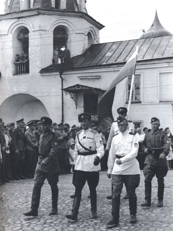 Из числа коллаборационистских лидеров непримиримыми противниками советской власти являлись белоэмигранты, в том числе бывшие белогвардейцы и офицеры царской армии, например, П. Н. Краснов и А. Г. Шкуро (обоим приписывается высказывание «хоть с чёртом против большевиков»)[68][69]. «Самым что ни на есть убеждённым врагом советской власти», с облегчением воспринявшим немецкую оккупацию, называют Д. А. Жуков и И. И. Ковтун руководителя Локотского самоуправления Б. Н. Каминского[70]. Дискуссионным в исторической науке остаётся вопрос о мотивах главнокомандующего Русской освободительной армии А. А. Власова: «Ничто не указывает на то, что он собирался „освобождать“ Россию до пленения», — отмечают О. В. Будницкий и Г. С. Зеленина[71]. Тем не менее, как подчёркивает кандидат исторических наук К. М. Александров, генерал не принуждался к сотрудничеству с противником насильственным путём и встал на путь коллаборационизма по своей воле: «Смерть ему не грозила и в лагере военнопленных у него существовала очевидная возможность свободно выбрать в плену ту модель поведения, которая в наибольшей степени соответствовала личным интересам»[72].