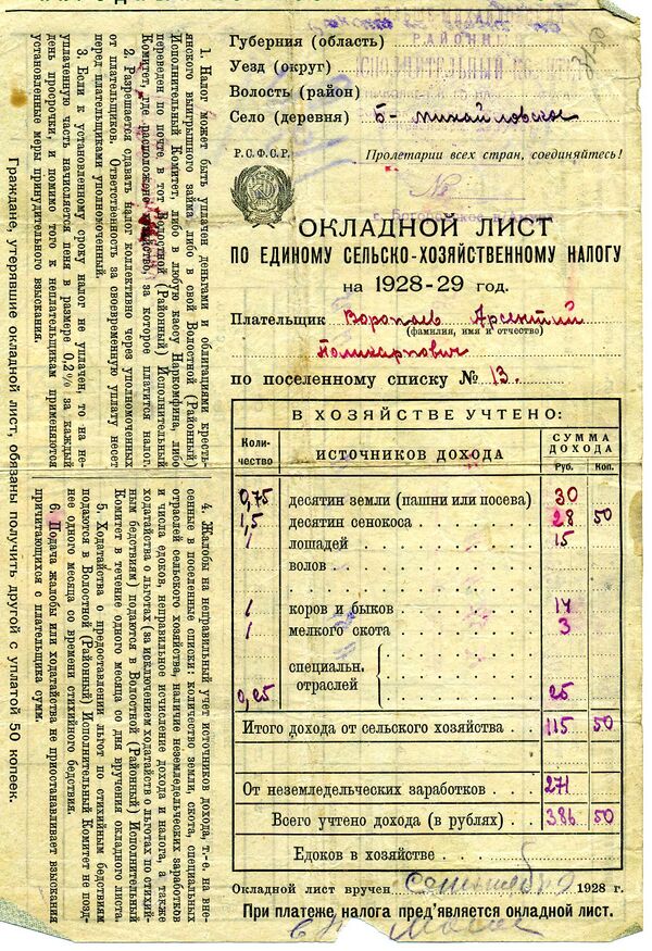 Крестьяне оказались в колхозах (советских общинах), прикреплённые к государственной земле, обрабатывающие её государственными орудиями труда и пользующиеся за это лишь малой частью произведённой ими продукции — фактически до 1966 года в натуральной форме и трудоднях, и редко деньгами. Подрыв экономической основы для повышения благосостояния, ограничения в частнособственнической деятельности снизил жизненный уровень крестьян.