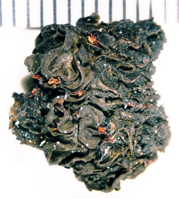 Плодовые тела, или апотеции, у коллем имеют буроватый окрас, достигают 1—2 мм шириной. В сумках имеется по 8 спор. Споры многоклеточные.