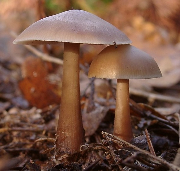 - Gymnopus fusipes — Веретеноногая коллибия растёт пучками у основания лиственных деревьев и имеет характерную веретеновидную ножку и очень широко расставленные пластинки[16][17].