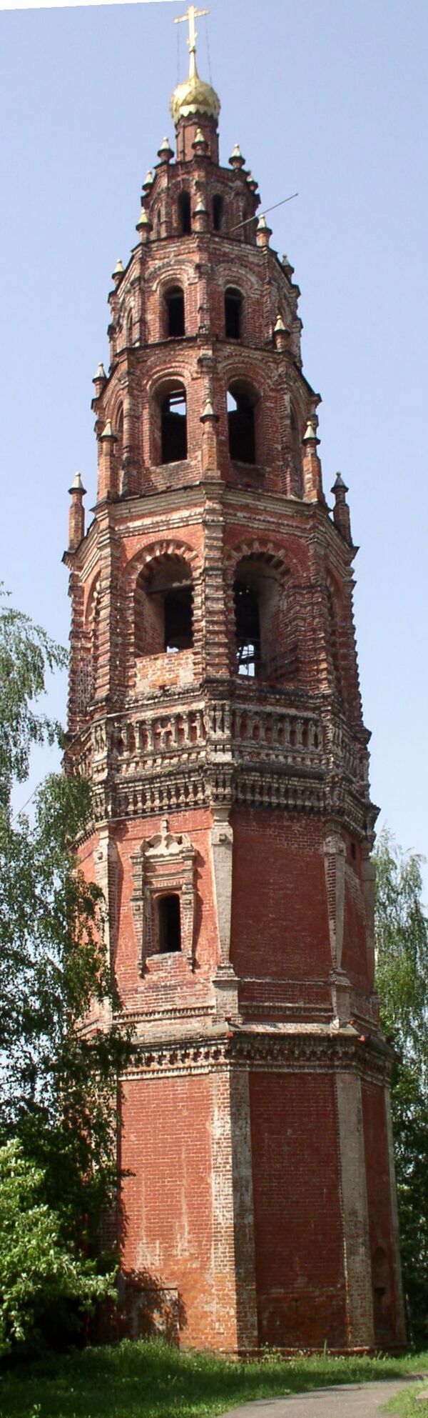 На иконах XVI века встречаются изображения деревянных восьмигранных колоколен. В московский период начали возводить из камня. После восьмиугольной начали делать четырёхугольные и круглые, имеющие в завершении шатёр либо шести- или восьмигранную пирамиду. Но всегда здание колокольни возводилось отдельно стоящим либо с примыканием к какой-либо стороне здания храма. Высота колокольни была незначительной. К исключениям можно отнести колокольню Ивана Великого в Московском Кремле, семиярусную колокольню Новоиерусалимского монастыря, 72-метровую колокольню Новодевичьего монастыря.