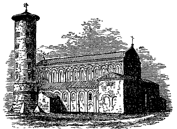 В VI века в Равенне рядом с базиликами Сант-Аполлинаре-Нуово и Сант-Аполлинаре-ин-Классе были возведены высокие колокольни-ротонды. Башни — круглые, фасады расчленены карнизами, этажи обозначены окнами, которые освещают внутренние лестницы. Оконные проёмы нижних этажей окаймлены простыми полуциркульными арками, верхних — двойными и тройными.