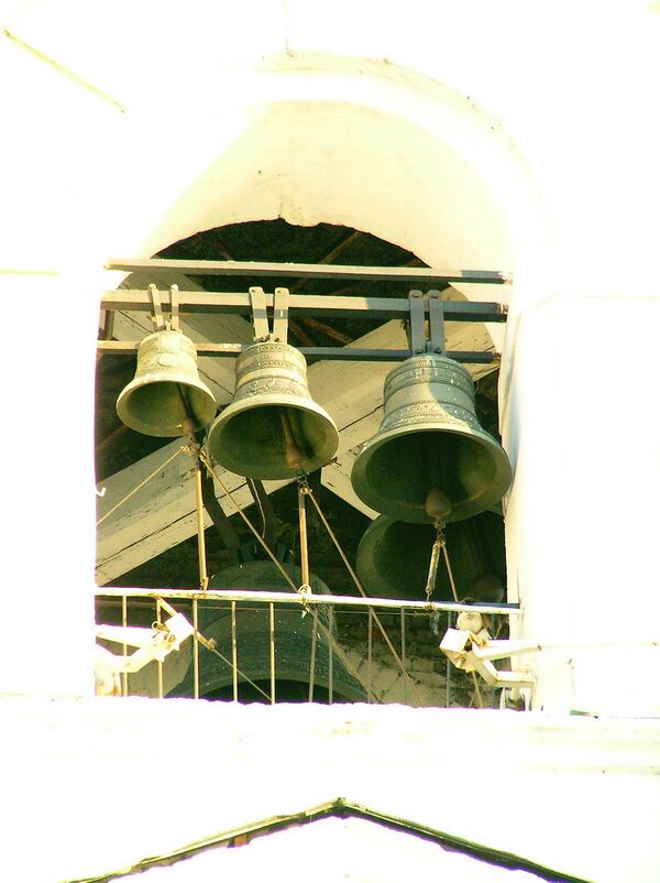 - Архангельский (XVII век) и безымянный колокол (предположительно XVIII век) — не участвуют в звонах[74].