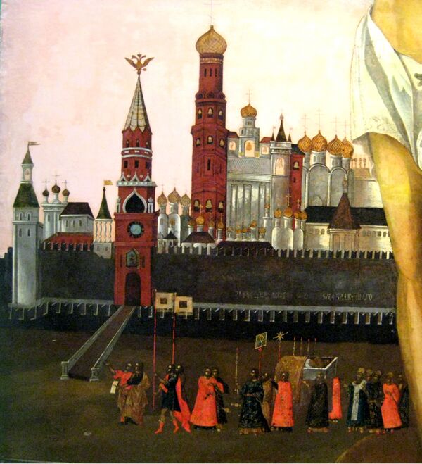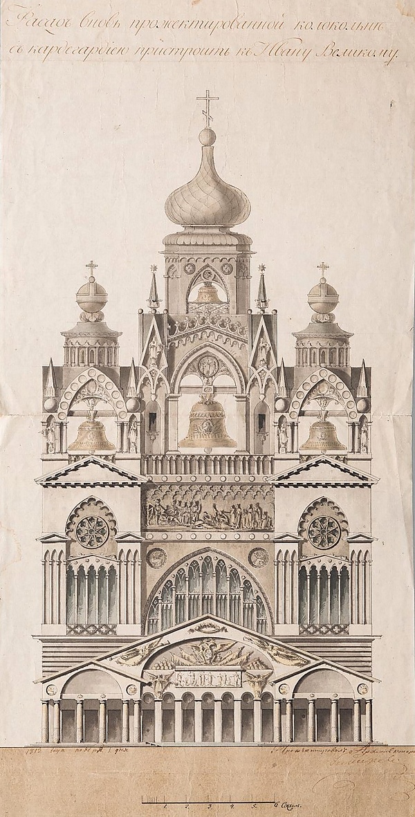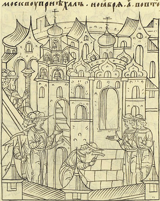 Того же лета [1508 год] свершиша церковь святаго Архангела Михаила на площади и Иоанн святый иже под колоколы и Иоанн святый Предтеча у Боровитских ворот, а мастер церквам Алевиз Новый, а колоколници Бон Фрязин[11].